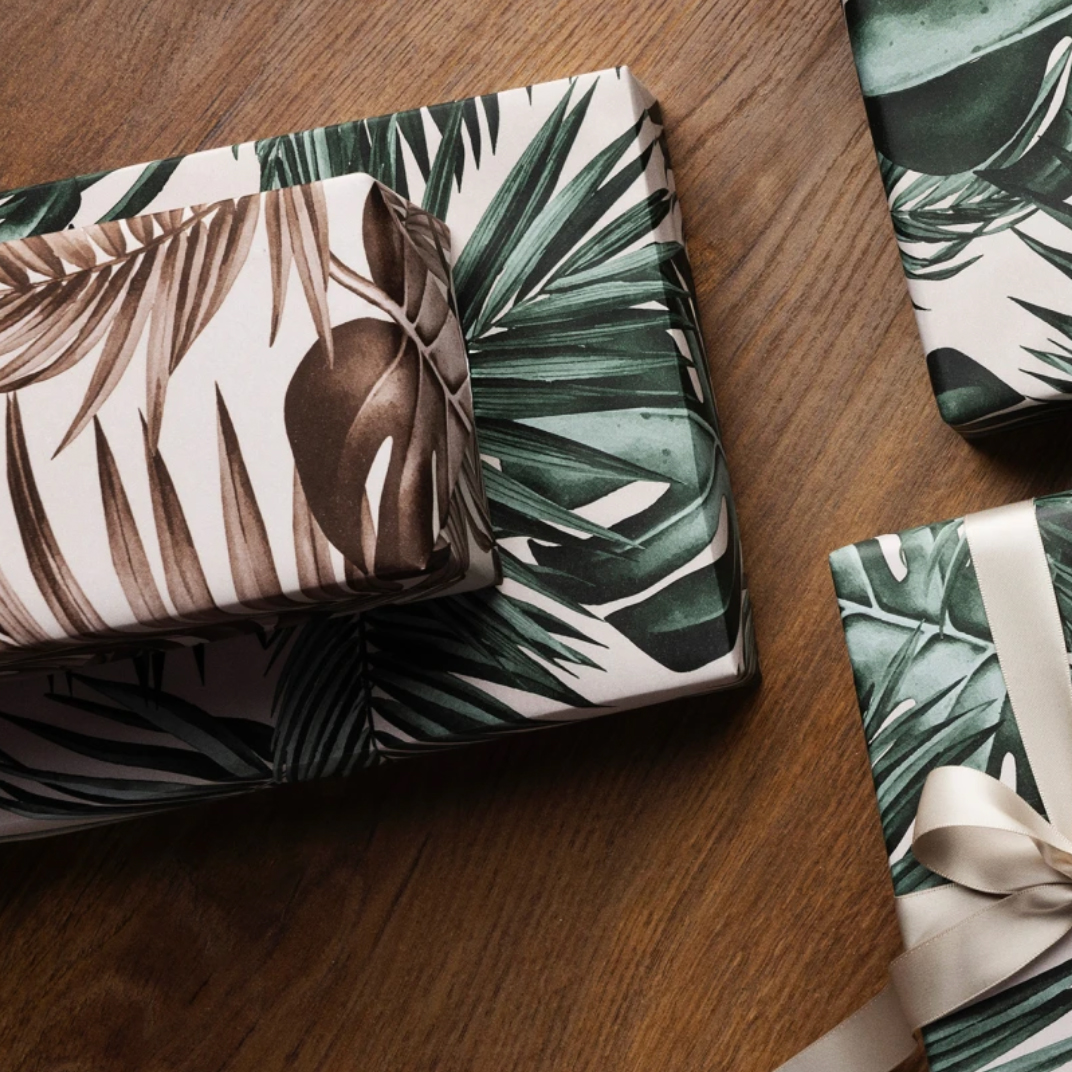 GESCHENKPAPIER 3680 PALM LEAVES BROWN 55 CM X 100 M